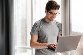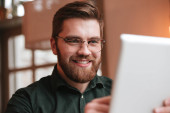 Zdjęcie "Obraz szczęśliwego brodatego mężczyzny w okularach uśmiechniętego i używającego notatnika siedzącego w salonie" może być wykorzystywane do celów osobistych i komercyjnych zgodnie z warunkami zakupionej licencji Royalty-free. Obraz jest dostępny do pobrania w jakości wysokiej rozdzielczości do 5760x3840.