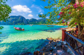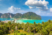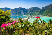 Zdjęcie "Panoramiczny widok na wioskę Tonsai, wyspa Phi Phi, Tajlandia" może być wykorzystywane do celów osobistych i komercyjnych zgodnie z warunkami zakupionej licencji Royalty-free. Obraz jest dostępny do pobrania w jakości wysokiej rozdzielczości do 5760x3840.