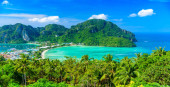 Panoramiczny widok na wioskę Tonsai, wyspa Phi Phi, Tajlandia