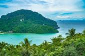 Widok na zatokę Loh Ssamah na wyspie Ko Phi Phi Lee, prowincja Krabi, Morze Andaman, Tajlandia