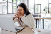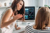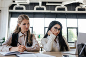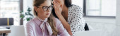 bizneswoman szepcząc do ucha współpracownika w okularach podczas plotkowania w biurze