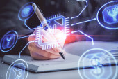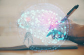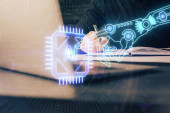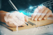 Zdjęcie "Wielokrotna ekspozycja kobiet piszących na tle technologii danych. Koncepcja innowacji." może być wykorzystywane do celów osobistych i komercyjnych zgodnie z warunkami zakupionej licencji Royalty-free. Obraz jest dostępny do pobrania w jakości wysokiej rozdzielczości do 5760x3840.