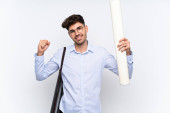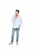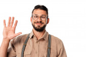 Zdjęcie "Uśmiechnięty kujon z ręką na biodrze stojący w pobliżu dużego ołówka na białym tle" może być wykorzystywane do celów osobistych i komercyjnych zgodnie z warunkami zakupionej licencji Royalty-free. Obraz jest dostępny do pobrania w jakości wysokiej rozdzielczości do 5760x3840.