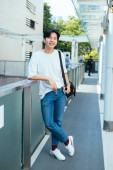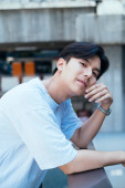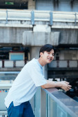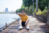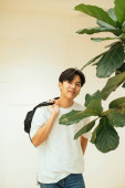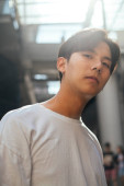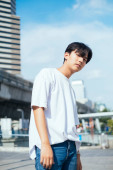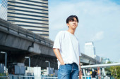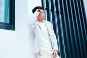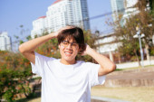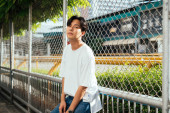 Zdjęcie "Nastolatek w białej koszulce, stojący na słońcu, podnosi rękę, by ukryć twarz.." może być wykorzystywane do celów osobistych i komercyjnych zgodnie z warunkami zakupionej licencji Royalty-free. Obraz jest dostępny do pobrania w jakości wysokiej rozdzielczości do 5760x3840.