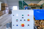 Panel sterowania linii sortującej przenośniki. Zakłady produkcyjne zajmujące się klasyfikacją, pakowaniem i przechowywaniem upraw, żywności lub towarów dużych przedsiębiorstw rolnych. Żarówki cebulowe.