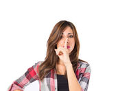 Młoda ładna kobieta, obejmujące jej uszy na białym tle