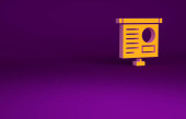 Ikona oleju pomarańczowego baryłkę izolowane na fioletowym tle. Koncepcja minimalizmu. Ilustracja 3D 3D renderowania.