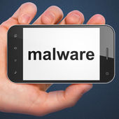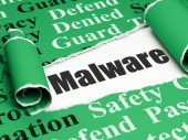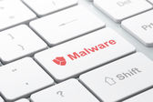 koncepcji ochrony: otworzył kłódkę i malware na tle klawiatury komputera