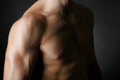 człowiek silny kulturysta doskonałe abs, barki, biceps, triceps i wyginanie mięśni klatki piersiowej