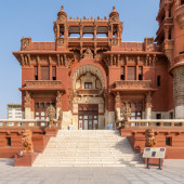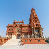 Baldachim nad głównym wejściem zabytkowego Pałacu Barona Empain, w hinduskim stylu architektonicznym, Kair