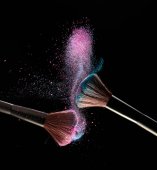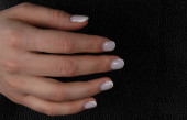Zdjęcie "Ręka z jasnym manicure i pędzel na czarnym tle rozrzucone z musujących. Projekt paznokci. Wydłużone paznokcie." może być wykorzystywane do celów osobistych i komercyjnych zgodnie z warunkami zakupionej licencji Royalty-free. Obraz jest dostępny do pobrania w jakości wysokiej rozdzielczości do 5760x3840.