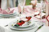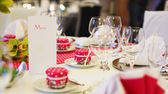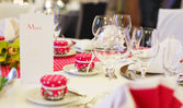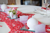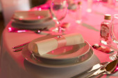 elegancki stół na ślub lub zdarzenia strony w kolorze różowym z kropkami.