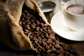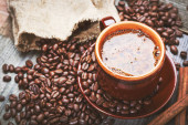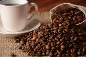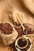 Filiżanka kawy i ziarna kawy