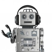3D renderowania cute sztuczna inteligencja robot z postacią z kreskówek nosić słuchawki