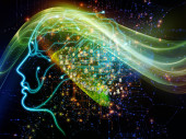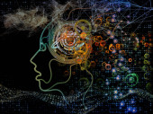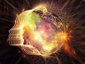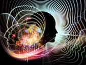 Seria geometrii człowieka. Fuzja linii ludzkiej sylwetki twarzy i fraktalnych siatek na temat psychologii, edukacji, nauki i natury umysłu.
