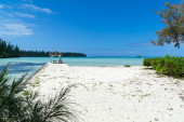 Piękny krajobraz morski naturalnego basenu Oro Bay, Wyspa Pines, Nowa Kaledonia. przezroczysta woda akwamarynowa.