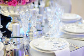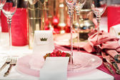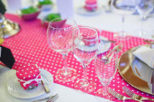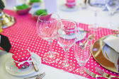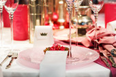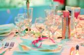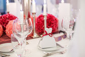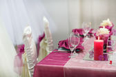 elegancki stół ustawiony w miękkie czerwone i różowe do ślubu lub imprezy
