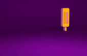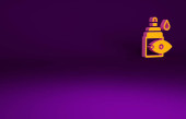 Pomarańczowa ikona IV worka izolowana na fioletowym tle. Worek krwi. Ofiarować koncepcję krwi. Koncepcja leczenia i terapii, chemioterapii. Koncepcja minimalizmu. Ilustracja 3D 3D renderowania.