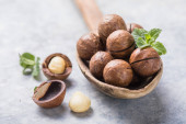 stara drewniana łyżka ze świeżym zielonym i czarnym pieprzem na rustykalnym tle