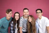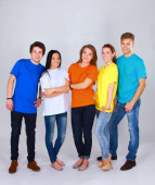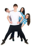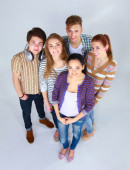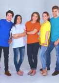 Grupa szczęśliwy pięknych młodych ludzi na białym tle