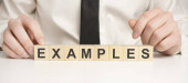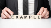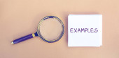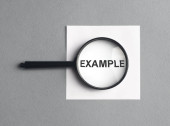 Słowo PRZYKŁAD jest napisane na szkle powiększającym na żółtym tle..