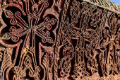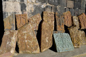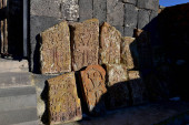 Khachkar (kamienne krzyże) w klasztorze Sevanavank, Armenia.