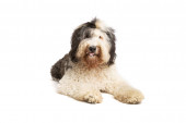Sheepadoodle pies przed białym tle