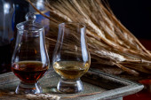 Zdjęcie "Szklanki whisky single malt i blended whisky serwowane w barze w Edynburgu, Szkocja, Wielka Brytania" może być wykorzystywane do celów osobistych i komercyjnych zgodnie z warunkami zakupionej licencji Royalty-free. Obraz jest dostępny do pobrania w jakości wysokiej rozdzielczości do 5760x3840.