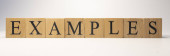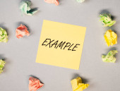 Słowo przykład na papierze, przypadki w biznesie lub edukacji