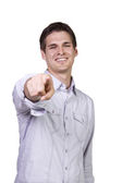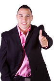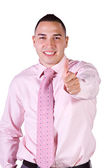 na białym tle obraz przystojny biznesmen dając kciuki - biały