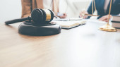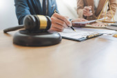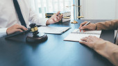 Zdjęcie "Sędzia Młotek z adwokatami sprawiedliwości ma spotkanie zespołu w firmie prawniczej. Pojęcia prawa i usług prawnych." może być wykorzystywane do celów osobistych i komercyjnych zgodnie z warunkami zakupionej licencji Royalty-free. Obraz jest dostępny do pobrania w jakości wysokiej rozdzielczości do 5760x3840.