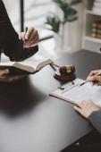 Sędzia Młotek z adwokatami sprawiedliwości ma spotkanie zespołu w firmie prawniczej. Pojęcia prawa i usług prawnych.