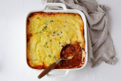 Tradycyjne brytyjskie danie Shepherds pie casserole z góry