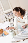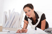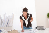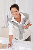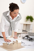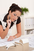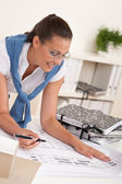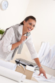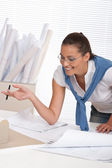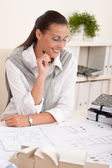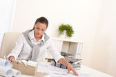 uśmiechnięta kobieta architekt praca z planami w urzędzie