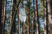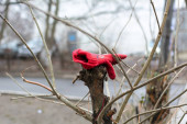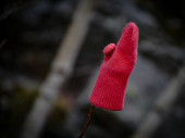 Zdjęcie "Zbliżenie rękawiczki czerwonego dziecka powieszonej na gałęzi drzewa w lesie. Fotografia makro" może być wykorzystywane do celów osobistych i komercyjnych zgodnie z warunkami zakupionej licencji Royalty-free. Obraz jest dostępny do pobrania w jakości wysokiej rozdzielczości do 5760x3840.