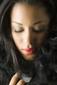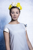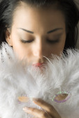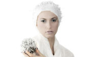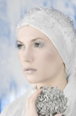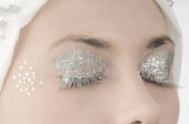 młoda kobieta w bieli z rzęs srebrny i gwiazda na twarz