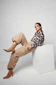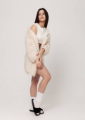 modne kobieta taniec na kolorowe tło buty kurtka nagie nogi