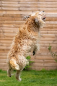 Zdjęcie "ładny niechlujny terier pies stojący na jej tylne nogi, śmiejąc się. pies jest jedenaście lat" może być wykorzystywane do celów osobistych i komercyjnych zgodnie z warunkami zakupionej licencji Royalty-free. Obraz jest dostępny do pobrania w jakości wysokiej rozdzielczości do 5760x3840.