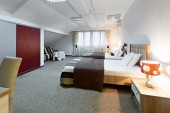 Pokój Hostel z widokiem na miasto. kolor pokoju. jasne wnętrza