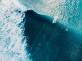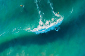 Zdjęcie "Widok z powietrza na czystą wodę oceanu, fale i surferów na wyspie Bali. Widok z góry" może być wykorzystywane do celów osobistych i komercyjnych zgodnie z warunkami zakupionej licencji Royalty-free. Obraz jest dostępny do pobrania w jakości wysokiej rozdzielczości do 5760x3840.