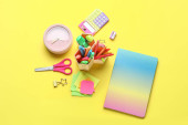 Zdjęcie "Piórnik z papeterią na tle koloru" może być wykorzystywane do celów osobistych i komercyjnych zgodnie z warunkami zakupionej licencji Royalty-free. Obraz jest dostępny do pobrania w jakości wysokiej rozdzielczości do 5760x3840.