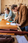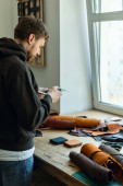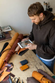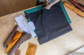 Zdjęcie "Schemat rysunku rzemieślnika podszewka do torby na tkankach tworzących skórę w pracowni skórzanej" może być wykorzystywane do celów osobistych i komercyjnych zgodnie z warunkami zakupionej licencji Royalty-free. Obraz jest dostępny do pobrania w jakości wysokiej rozdzielczości do 5760x3840.