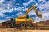 Zdjęcie "spychacz z ruchu gleby ostrze ze stali i piasku wokół i pracy w piaskownicy na budowie hali domu, drogi lub przemysłowych" może być wykorzystywane do celów osobistych i komercyjnych zgodnie z warunkami zakupionej licencji Royalty-free. Obraz jest dostępny do pobrania w jakości wysokiej rozdzielczości do 5760x3840.