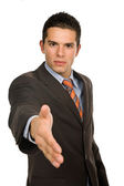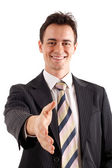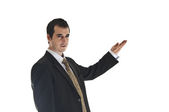 mężczyzna oferujący ręcznie na białym tle biały, skupić się na głowę