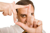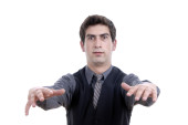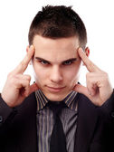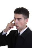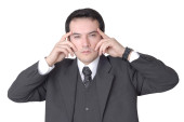 biznesmen w komplet gesty z głowy