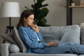 Zdjęcie "Kobieta siedzieć na kanapie umieścić komputer na kolanach kupując online" może być wykorzystywane do celów osobistych i komercyjnych zgodnie z warunkami zakupionej licencji Royalty-free. Obraz jest dostępny do pobrania w jakości wysokiej rozdzielczości do 5760x3840.