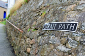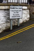 harlech Wales 5 października 2020: Zarejestruj się na Ffordd Pen Llech, teraz druga najbardziej stroma ulica na świecie. Barmouth, Gwynedd, Północna Walia, Wielka Brytania, krajobraz