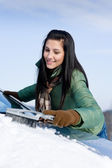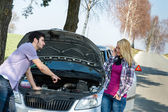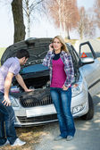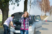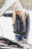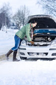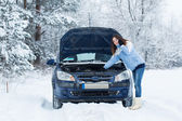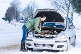 Awaria samochodu zimą - kobieta wołanie o pomoc