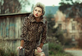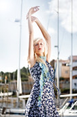zadziwiający blond kobieta na ulicy w wakacje cały dzień