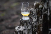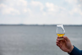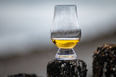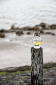 Drążek do trzymania pojedynczej whisky słodowej na wybrzeżu Szkocji